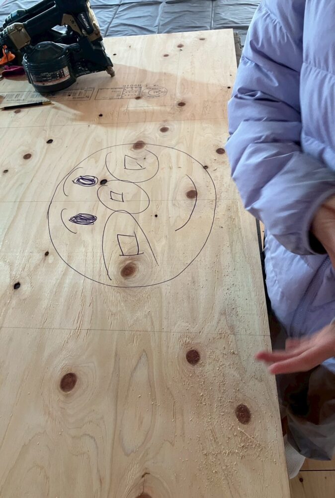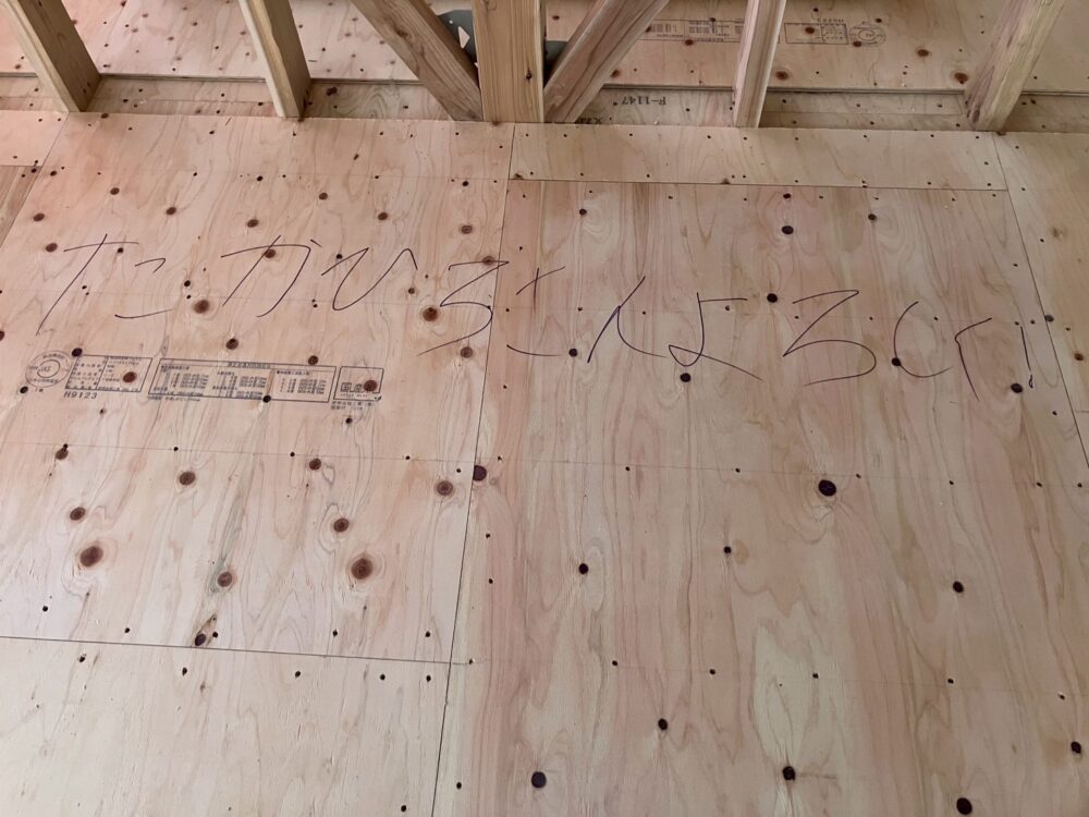 建築中の木材には大工さんへの応援メッセージも!黙々と作業に励む職人たちにとって、